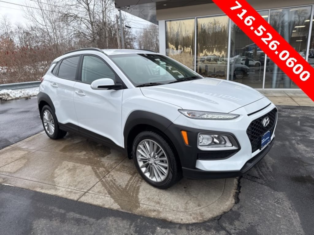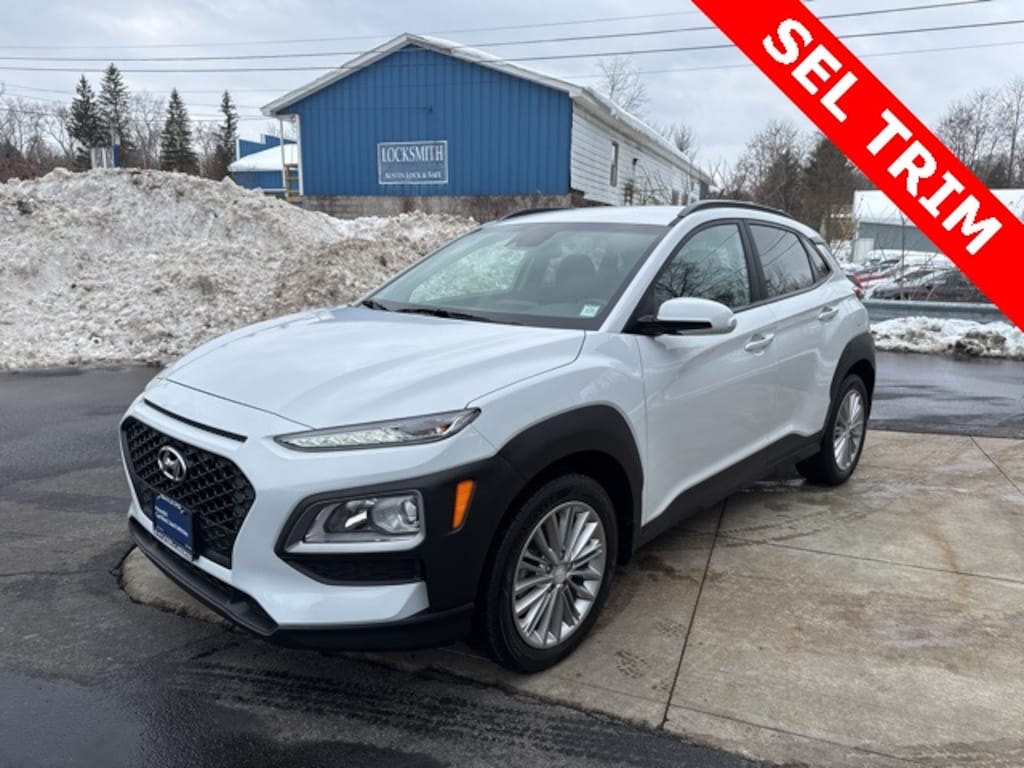 Kona SEL, AWD, Chalk White, Black Cloth, Option Group 01, 3.648 Axle Ratio, 4-Wheel Disc Brakes, 6 Speakers, ABS brakes, Air Conditioning, Alloy wheels, AM/FM radio: SiriusXM, Apple CarPlay & Android Auto, Brake assist, Bumpers: body-color, Cargo Net, Carpeted Floor Mats, Cloth Seat Trim, Delay-off headlights, Driver door bin, Driver vanity mirror, Dual front impact airbags, Dual front side impact airbags, Electronic Stability Control, Exterior Parking Camera Rear, Four wheel independent suspension, Front anti-roll bar, Front Bucket Seats, Front Center Armrest, Front reading lights, Fully automatic headlights, Heated door mirrors, Heated Front Bucket Seats, Heated front seats, Illuminated entry, Leather Shift Knob, Leather steering wheel, Low tire pressure warning, Mudguards, Occupant sensing airbag, Outside temperature display, Overhead airbag, Overhead console, Panic alarm, Passenger door bin, Passenger vanity mirror, Power door mirrors, Power steering, Power windows, Radio: AM/FM/MP3/HD Radio/SiriusXM Audio System, Rear anti-roll bar, Rear Bumper Applique, Rear seat center armrest, Rear window defroster, Rear window wiper, Remote keyless entry, Roof rack: rails only, Security system, Speed control, Speed-sensing steering, Split folding rear seat, Spoiler, Steering wheel mounted audio controls, Tachometer, Telescoping steering wheel, Tilt steering wheel, Traction control, Trip computer, Turn signal indicator mirrors, Variably intermittent wipers, Wheels: 17 x 7.0J Alloy, Kona SEL, AWD, Chalk White, Black Cloth, Option Group 01.