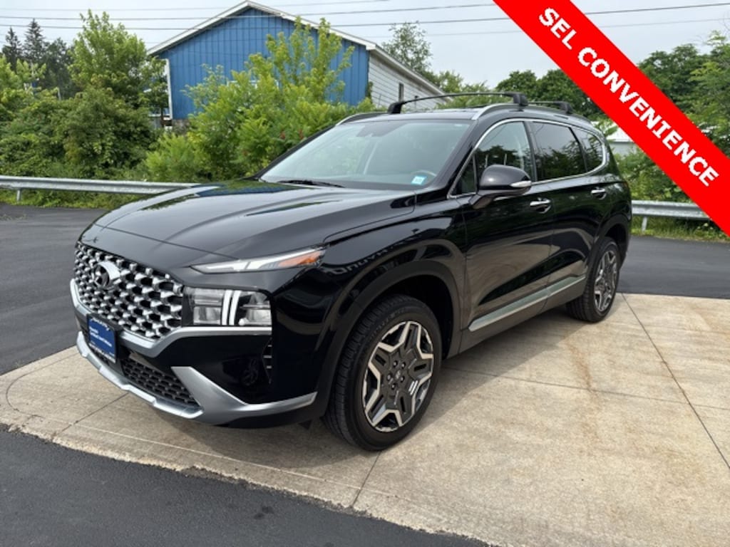 Santa Fe Plug-In Hybrid SEL Convenience, Hyundai Certified Used Vehicles Certified, I4, Twilight Black, Beige Cloth, Option Group 01, 3.510 Axle Ratio, 4-Wheel Disc Brakes, 6 Speakers, ABS brakes, Air Conditioning, Alloy wheels, AM/FM radio: SiriusXM, Apple CarPlay & Android Auto, Auto High-beam Headlights, Auto-dimming Rear-View mirror, Automatic temperature control, Brake assist, Bumper Applique, Bumpers: body-color, Cargo Cover/Screen, Cargo Net, Cargo Tray, Carpeted Floor Mats, Delay-off headlights, Driver door bin, Driver vanity mirror, Dual front impact airbags, Dual front side impact airbags, Electronic Stability Control, Emergency communication system, Exterior Parking Camera Rear, First Aid Kit, Four wheel independent suspension, Front anti-roll bar, Front Bucket Seats, Front Center Armrest, Front dual zone A/C, Front reading lights, Fully automatic headlights, Garage door transmitter: HomeLink, Heated door mirrors, Heated Front Bucket Seats, Heated front seats, Illuminated entry, Leather steering wheel, Low tire pressure warning, Occupant sensing airbag, Outside temperature display, Overhead airbag, Overhead console, Panic alarm, Passenger door bin, Passenger vanity mirror, Power door mirrors, Power driver seat, Power Liftgate, Power steering, Power windows, Radio: AM/FM Display Audio, Rear anti-roll bar, Rear Parking Sensors, Rear seat center armrest, Rear window defroster, Rear window wiper, Remote keyless entry, Roof Rack Crossbars, Security system, Speed control, Speed-sensing steering, Split folding rear seat, Spoiler, Steering wheel mounted audio controls, Tachometer, Telescoping steering wheel, Tilt steering wheel, Traction control, Trip computer, Turn signal indicator mirrors, Variably intermittent wipers, Wheel Locks, Wheels: 19" x 7.5J Alloy, YES Essentials Stain-Resistant Cloth Seat Trim, Santa Fe Plug-In Hybrid SEL Convenience, I4, Twilight Black, Beige Cloth, Option Group 01.