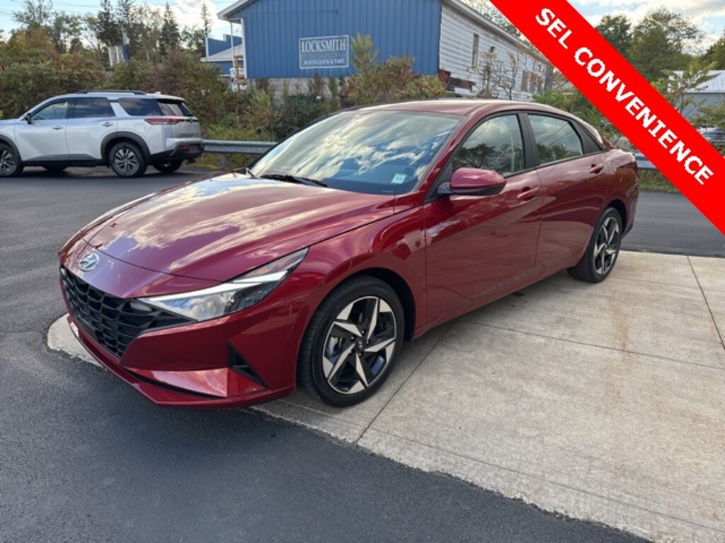 Elantra SEL, Hyundai Certified Used Vehicles Certified, Ultimate Red, Black Cloth, 2nd Row USB Charge Port, Convenience Package, Electronic Parking Brake, Forward Collision Avoidance Assist, Full 10.25" LCD TFT Cluster, Heated Front Seats, Heated Outside Mirrors, Leather-Wrapped Steering Wheel, LED Interior Lights, Navigation System, Option Group 02, Radio: AM/FM/HD/SiriusXM Audio System, Smart Cruise Control w/Stop & Go, Wheels: 17" x 7.0J Machine Finish Alloy, Wireless Charging Pad, 16" x 6.5J Alloy Wheels, 4-Wheel Disc Brakes, 6 Speakers, ABS brakes, Air Conditioning, Alloy wheels, AM/FM radio: SiriusXM, Apple CarPlay & Android Auto, Auto High-beam Headlights, Automatic temperature control, Brake assist, Bumpers: body-color, Cargo Net, Carpeted Floor Mats, Cloth Seat Trim, Delay-off headlights, Driver door bin, Driver vanity mirror, Dual front impact airbags, Dual front side impact airbags, Electronic Stability Control, Emergency communication system: Blue Link Connected Car Service (3-year complimentary subscription), Exterior Parking Camera Rear, First Aid Kit, Front anti-roll bar, Front Bucket Seats, Front Center Armrest, Front dual zone A/C, Front reading lights, Front wheel independent suspension, Fully automatic headlights, Illuminated entry, Low tire pressure warning, Occupant sensing airbag, Outside temperature display, Overhead airbag, Overhead console, Panic alarm, Passenger door bin, Passenger vanity mirror, Power door mirrors, Power steering, Power windows, Radio: AM/FM/HD/SiriusXM Display Audio, Rear window defroster, Remote keyless entry, Reversible Cargo Tray, Security system, Speed control, Speed-sensing steering, Steering wheel mounted audio controls, Tachometer, Telescoping steering wheel, Tilt steering wheel, Traction control, Trip computer, Variably intermittent wipers, Elantra SEL, Ultimate Red, Black Cloth, 2nd Row USB Charge Port, Convenience Package, Electronic Parking Brake, Forward Collision Avoidance Assist, Full 10.25" LCD TFT Cluster, Heated Front Seats, Heated Outside Mirrors, Leather-Wrapped Steering Wheel, LED Interior Lights, Navigation System, Option Group 02, Radio: AM/FM/HD/SiriusXM Audio System, Smart Cruise Control w/Stop & Go, Wheels: 17" x 7.0J Machine Finish Alloy, Wireless Charging Pad.