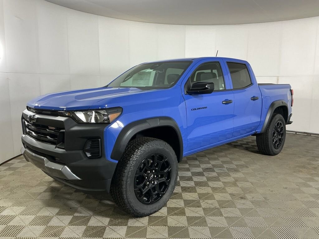 2026 Chevrolet Colorado Reef Blue Metallic Trail Boss 4WD 8-Speed Automatic 2.7L I4 Turbocharged DOHC 16V LEV3-ULEV50 310hpRecent Arrival! 4WD, 1st and 2nd Row All-Weather Floor Liner, 3.42 Rear Axle Ratio, 4-Spoke Wrapped Steering Wheel, 4-Way Manual Passenger Seat Adjuster, 4-Wheel Disc Brakes, 6 Speakers, 6-Speaker Audio System Feature, 6-Way Manual Driver Seat Adjuster, 8-Way Power Driver Seat Adjuster, ABS brakes, Air Conditioning, Alloy wheels, AM/FM radio: SiriusXM with 360L, Apple CarPlay/Android Auto, Auto High-beam Headlights, Automatic Emergency Braking, Automatic temperature control, Black Nameplates, Brake assist, Chevy Safety Assist, Cloth Seat Trim, Compass, Delay-off headlights, Driver and Front Passenger Heated Seats, Driver door bin, Driver vanity mirror, Dual front impact airbags, Dual front side impact airbags, Electronic Stability Control, Emergency communication system: OnStar, Evotex Seat Trim, Following Distance Indicator, Forward Collision Alert, Front anti-roll bar, Front Bucket Seats, Front Center Armrest, Front dual zone A/C, Front Pedestrian and Bicyclist Braking, Front wheel independent suspension, Heated door mirrors, Heated Steering Wheel, Illuminated entry, IntelliBeam Automatic High Beam on/Off, Lane Keep Assist with Lane Departure Warning, Low tire pressure warning, Navigation System, Occupant sensing airbag, Outside temperature display, Overhead airbag, Overhead console, Panic alarm, Passenger door bin, Passenger vanity mirror, Power door mirrors, Power Driver Lumbar Control Seat Adjuster, Power steering, Power windows, Preferred Equipment Group 0TR, Radio data system, Radio: 11.3 Diagonal Advanced Color LCD Display, Rear reading lights, Rear step bumper, Rear window defroster, Remote keyless entry, Remote Vehicle Starter System, Security system, SiriusXM with 360L Trial Subscription, Speed control, Speed-sensing steering, Split folding rear seat, Steering Wheel Mounted Audio Controls, Steering wheel mounted audio controls, Tachometer, Tilt steering wheel, Traction control, Trail Boss Convenience Package II, Trip computer, Variably intermittent wipers, Wheels: 18 x 8.5 Black High Gloss Aluminum, Wheels: 20 x 9 High Gloss Black Aluminum, Wireless Phone Charging, Wireless Phone Projection, 4WD.