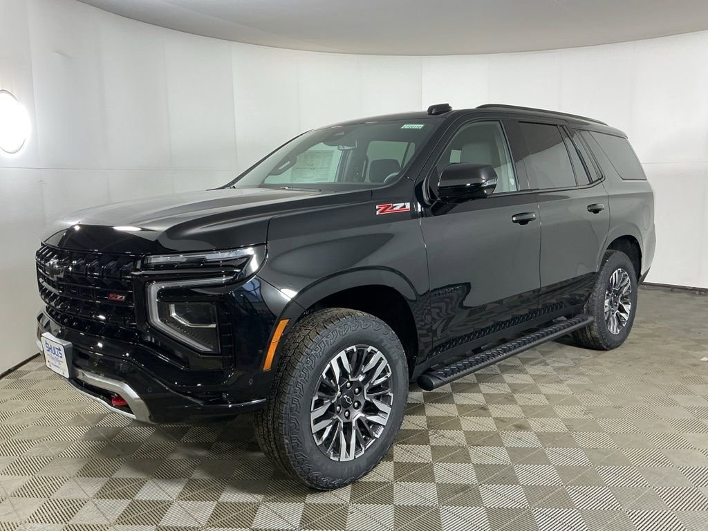 2026 Chevrolet Tahoe Black Z71 4WD 10-Speed Automatic with Overdrive EcoTec3 5.3L V84WD, Jet Black Leather, 1st and 2nd Row Color-Keyed Carpeted Floor Mats, 1st and 2nd Rows All-Weather Floor Liners, 2-Speed Active Electronic AutoTrac Transfer Case, 2-Way Power Driver Lumbar Seat Adjuster, 2-Way Power Front Passenger Lumbar Seat Adjuster, 2nd Row Power Release 60/40 Split-Folding Bench Seat, 3 Years SiriusXM, 3-Spoke Wrapped Steering Wheel, 3.23 Rear Axle Ratio, 3rd Row 60/40 Power-Folding Split-Bench Seat, 3rd Row All-Weather Floor Liners, 3rd Row Manual 60/40 Split-Folding Bench Seats, 3rd row seats: split-bench, 4-Wheel Disc Brakes, 6 Speakers, 6-Speaker Audio System Feature, 8-Way Power Driver Seat Adjuster, 8-Way Power Front Passenger Seat Adjuster, ABS brakes, Air Conditioning, All-Weather Cargo Mat, All-Weather Liner Protection Package, Alloy wheels, AM/FM radio: SiriusXM with 360L, Apple CarPlay/Android Auto, Auto High-beam Headlights, Auto-Dimming Inside Rear-View Mirror, Auto-dimming Rear-View mirror, Automatic temperature control, Black Tubular Assist Steps, Bose 10-Speaker Centerpoint Surround Audio System Feature, Brake assist, Bright Front and Rear Door Sill Plates, Bumpers: body-color, Color-Keyed Carpeting Floor Covering, Comfort Package, Compass, Delay-off headlights, Driver door bin, Driver vanity mirror, Dual Exhaust System, Dual front impact airbags, Dual front side impact airbags, Dual-Pane Power Panoramic Sunroof, Electronic Stability Control, Emergency communication system: OnStar and Chevrolet connected services capable, Exterior Parking Camera Rear, Floor Console with Storage Area, Four wheel independent suspension, Front anti-roll bar, Front Bucket Seats, Front Center Armrest, Front dual zone A/C, Front fog lights, Front High-Approach Angle Fascia, Front LED Fog Lamps, Front reading lights, Frontal Driver and Outboard Passenger Airbags, Fully automatic headlights, Garage door transmitter, Heated 2nd Row Outboard Seats, Heated door mirrors, Heated Driver and Front Passenger Seats, Heated front seats, Heated Steering Wheel, Hill Descent Control, Illuminated entry, Interior Camera, Key Card, Leather-Appointed Seat Trim, LED Headlamps with LED Daytime Running Lamps, LED Tail Lamps, Low tire pressure warning, Memory seat, Memory Settings, Memory Settings For Driver, Navigation system: Google built-in compatibility (select service plan required, terms and limitations apply), Occupant sensing airbag, Outside Heated Power-Adjustable Mirrors, Outside temperature display, Overhead airbag, Overhead console, Panic alarm, Passenger door bin, Passenger vanity mirror, Power door mirrors, Power driver seat, Power Liftgate, Power passenger seat, Power Release 2nd Row Bucket Seats, Power steering, Power windows, Premium audio system: Chevrolet Infotainment 3 Premium, Premium Smooth Ride Suspension, Radio data system, Radio: 17.7 Diagonal Advanced Color LCD Display, Rain sensing wipers, Rear air conditioning, Rear anti-roll bar, Rear Power Liftgate, Rear reading lights, Rear seat center armrest, Rear window defroster, Rear window wiper, Red Horizontal-Mounted Recovery Hooks, Remote keyless entry, Remote Start, Security system, SiriusXM with 360L Trial Subscription, Speed control, Speed-sensing steering, Split folding rear seat, Spoiler, Steering wheel mounted audio controls, Tachometer, Telescoping steering wheel, Tilt steering wheel, Traction control, Trip computer, Universal Home Remote, USB Ports, Variably intermittent wipers, Voltmeter, Wheels: 20 x 9 Bright Machined Aluminum, Wireless Phone Charging, Z71 Exterior Features, 4WD, Jet Black Leather.