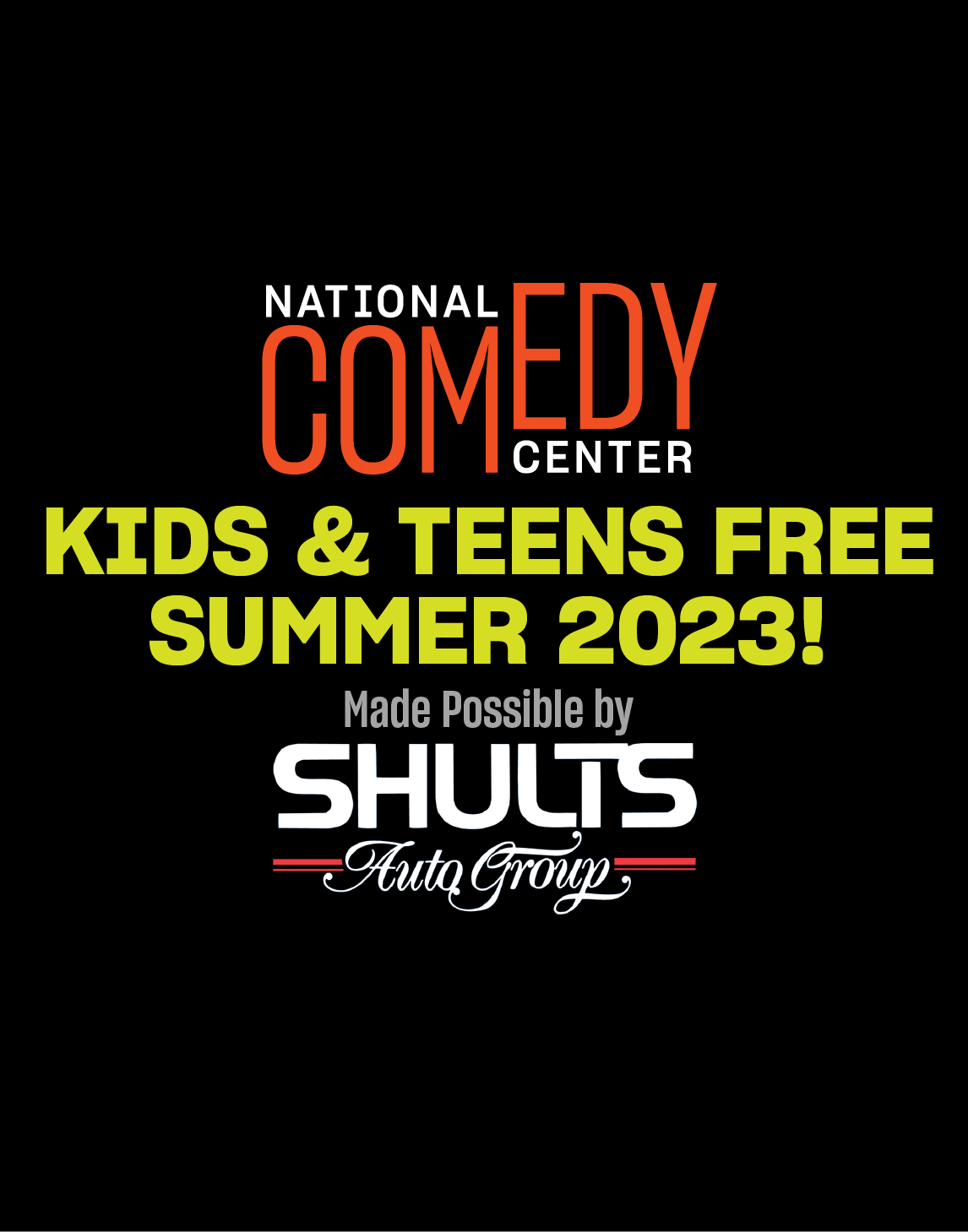 The National Comedy Center, the nation's official museum and cultural institution dedicated to comedy, has announced today that kids and teens, age 17 and under, will be admitted to its museums for free throughout the summer, made possible with the generous support of Shults Auto Group.