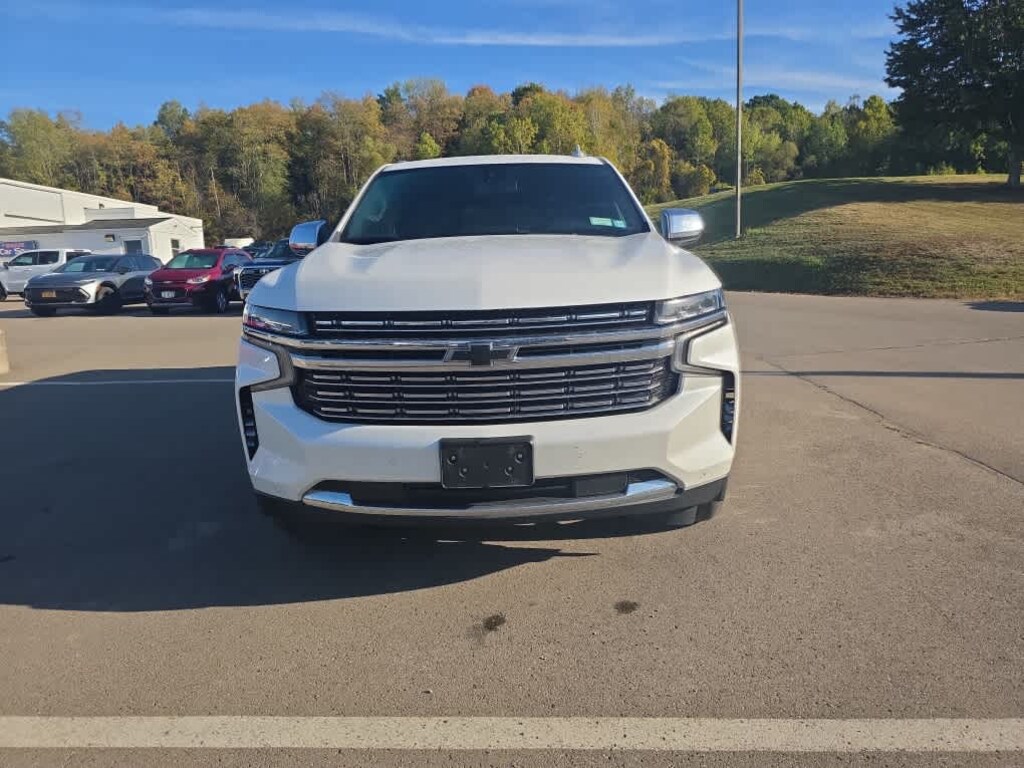 Navigation, Heated Leather Seats, Sunroof, 3rd Row Seat, DVD Entertainment System, Captains Chairs, Trailer Hitch, LPO, 22" (55.9 CM) MULTI-SPLIT SPOKE CHROME WHEELS, SUNROOF, POWER PANORAMIC, DUAL-PANE, TILT-SLIDING. ======KEY FEATURES INCLUDE: Leather Seats, Third Row Seat, Quad Bucket Seats, Power Liftgate, Rear Air. Chevrolet Premier with Iridescent Pearl Tricoat exterior and Jet Black interior features a 8 Cylinder Engine with 355 HP at 5600 RPM*. ======OPTION PACKAGES: LPO wheels will come with 4 steel 22" wheels from the factory with alignment specs set to 22" LPO wheel selected (dealer-installed) (Includes factory-installed wheel locks and not (SFE) wheel locks, LPO. includes dual rear seat-mounted 12.6" diagonal color-touch LCD HD screens, Wi-Fi wireless projection capability, two 2-channel wireless infrared digital headphones with 2 HDMI ports on the back of the center console; compatible with Bluetooth headphones, with express-open and close and power sunshade, AM/FM stereo, Bluetooth audio streaming for 2 active devices, Apple CarPlay and Android Auto capable, enhanced voice recognition, additional memory for in-vehicle apps, cloud connected personalization for select infotainment and vehicle settings. Subscription required for enhanced and connected services after trial period. (STD), with Dynamic Fuel Management, Direct Injection and Variable Valve Timing, includes aluminum block construction (355 hp [265 kW] @ 5600 rpm, 383 lb-ft of torque [518 Nm] @ 4100 rpm) (STD), electronically controlled with overdrive, includes Traction Select System including tow/haul (Most vehicles built on or after 6-7-2021 with a V8 engine will have (NSS) Not Equipped with Automatic Stop/Start, which removes Automatic Stop/Start, Engine control stop/start disable button and its content.) (STD). Horsepower calculations based on trim engine configuration. Please confirm the accuracy of the included equipment by calling us prior to purchase.