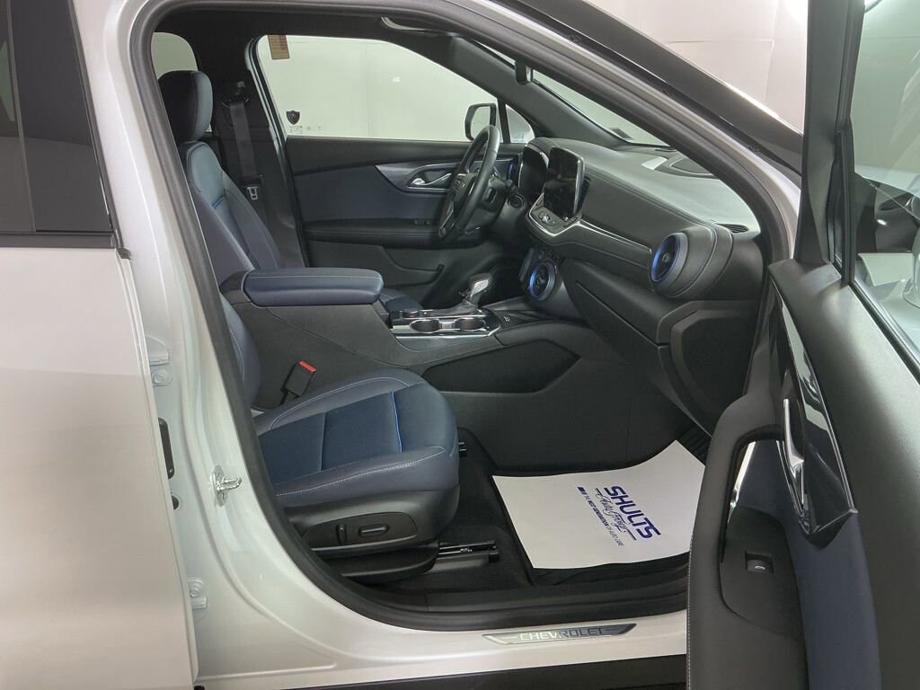The Blazer RS's stunning Iridescent Pearl Tricoat exterior, complemented by the sleek Black two-tone roof, commands attention wherever you go. Step inside and you'll be greeted by a meticulously crafted interior, featuring perforated leather-appointed seating, power-adjustable and heated/ventilated front seats, and a heated steering wheel all designed to provide unparalleled comfort and luxury.