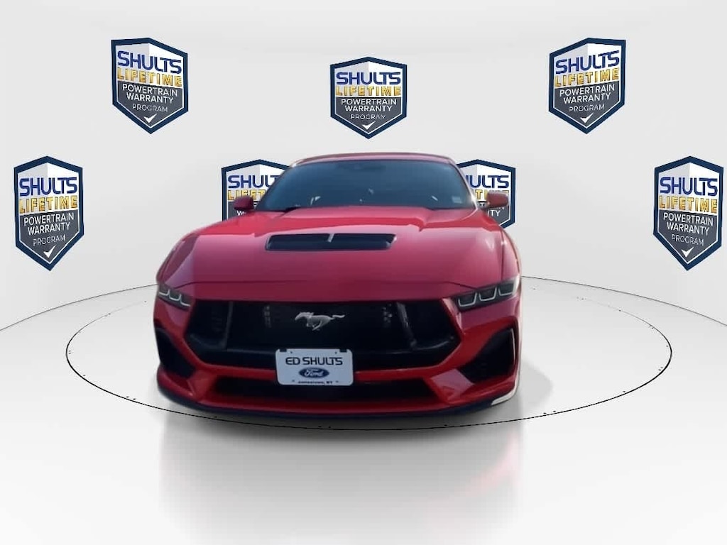 GT PERFORMANCE PACKAGE K-brace and accent stitched center console lid, Electric Hand-Operated Parking Brake (Drift Brake), Black Brake Calipers w/White Logo, Heavy-Duty Front Springs, Wheels: 19 x 9 Fr/19 x 9.5 Rr Carbonized, Gray-painted aluminum, Black Painted Strut-Tower Brace, Front Towing Hooks, Ebony Black Grille, ice white front and rear pony badge, 3.73 TORSEN Limited-Slip Rear Axle Ratio, Unique Stability Control, EPAS and ABS tuning, Brembo Brake System, performance linings, Upsized Rear Sway Bars, Tires: 255/40R19 Fr & 275/40R19 Rr Summer-Only, Designed to optimize driving dynamics and provide superior performance on wet and dry roads, High performance summer tires wear faster than non-performance tires, Ford does not recommend using summer tires when temperatures drop to, B&O SOUND SYSTEM BY BANG & OLUFSEN W/12 SPEAKERS subwoofer in trunk, FORD CO-PILOT360 ASSIST+ Pre-Collision Assist w/Automatic Emergency Braking, Evasive Steering Assist, Connected Navigation, Navigation services require SYNC4 and FordPass Connect (optional on select vehicles), complimentary connect service and the FordPass app (see FordPass Terms for details), Eligible vehicles receive a complimentary 1-year trial of navigation services that begins on the new vehicle warranty start date, Customers must unlock the navigation service trial by activating the eligible vehicle w/a FordPass member account, If not subscribed by the end of the complimentary period, the connected navigation service will terminate, and the system will revert to embedded offline navigation, Connected service and features depend on compatible AT&T network availability, Evolving, ENGINE: 5.0L TI-VCT V8 stop/start system and Port Fueled Direct Injection (PFDI) (STD).