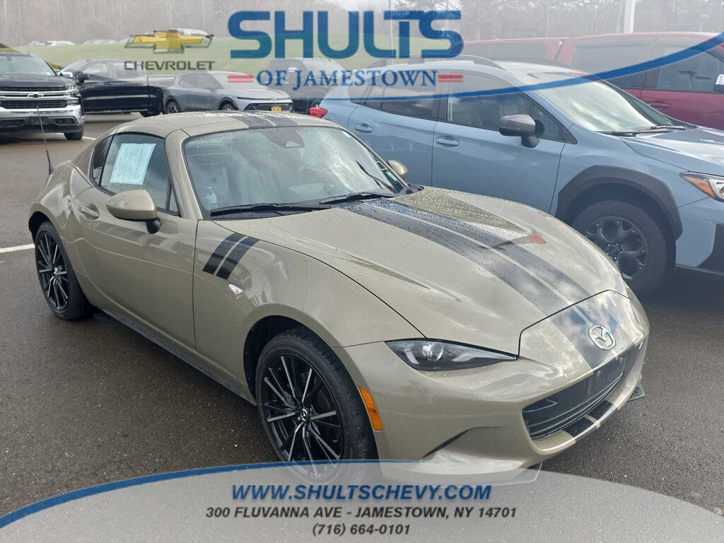 Leather Seats, Navigation, Heated Driver Seat, Back-Up Camera, Premium Sound System Mazda MX-5 Miata RF Grand Touring with Zircon Sand Metallic exterior and Black interior features a 4 Cylinder Engine with 181 HP at 7000 RPM*. SHULTS CERTIFIED - LIFETIME ENGINE WARRANTY! CARFAX 1-OWNER, FREE VEHICLE HISTORY REPORT! NO ACCIDENTS! 4 CYL - ALL THE POWER - HATES GAS! Bluetooth® HANDS FREE! NAVIGATION! Smartphone Integration, Blind Spot Monitors, Keyless Access w/Push Button Start